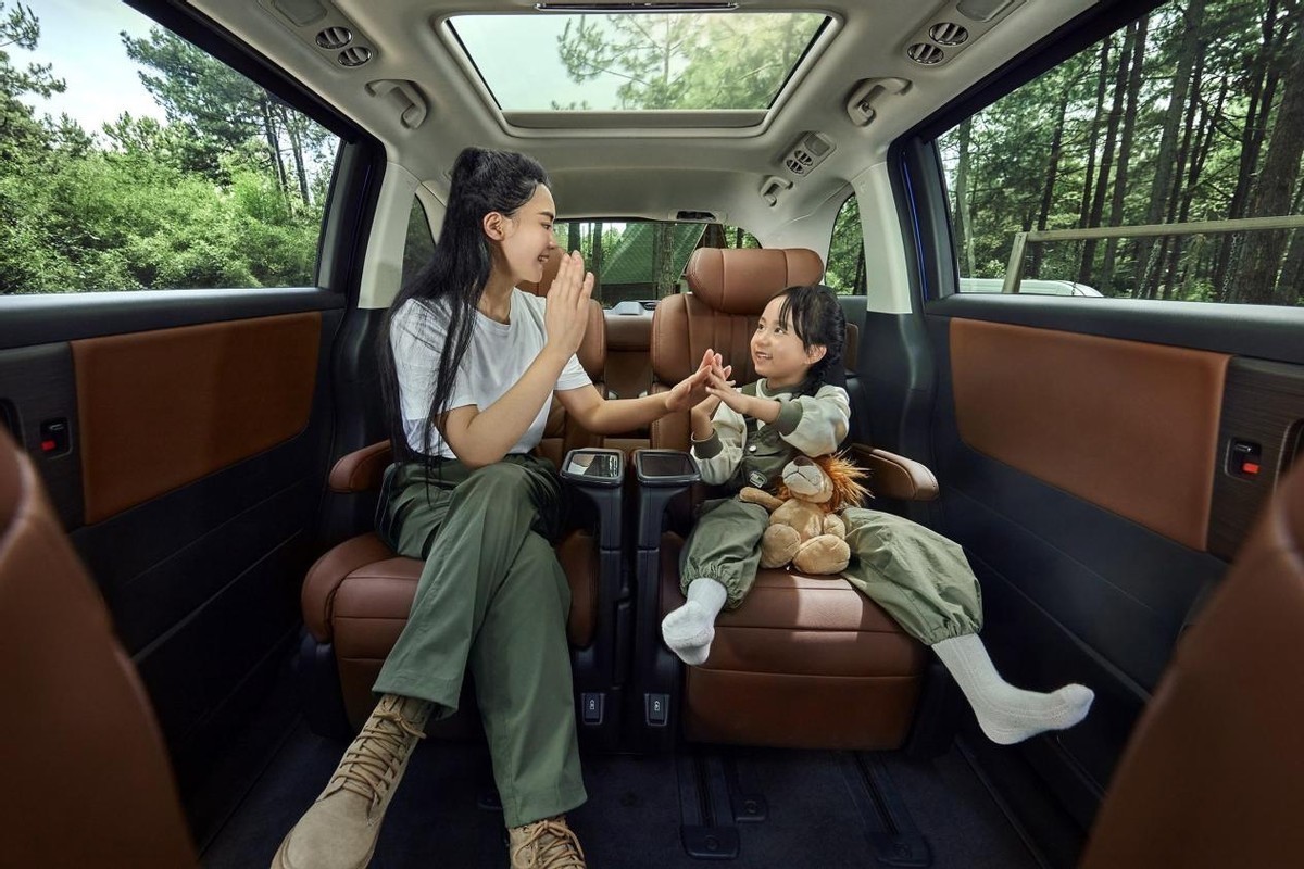 二排座椅侧面配有可折叠小桌板,展开后能稳稳放下孩子的辅食碗、绘本或平板电脑,喂食、陪读都不用抱着;后排空调带 PM2.5 过滤功能,花粉季或雾霾天能阻挡过敏原,减少孩子打喷嚏、咳嗽的情况;全车配备前排3个后排4个充电口,分别分布在二排、三排和中控下方,孩子的平板、家长的手机能同时充电,不用再为 “谁先充” 纠结。