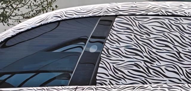 外观设计方面,新车采用流畅的溜背式车顶线条,黑色支柱营造出"悬浮车顶"视觉效果,门把手采用隐藏式设计以优化空气动力学性能。测试车辆配备八辐镀铬轮毂,前翼子板集成盲点监测摄像头,左后侧设有充电接口,尾部则采用贯穿式灯带设计。