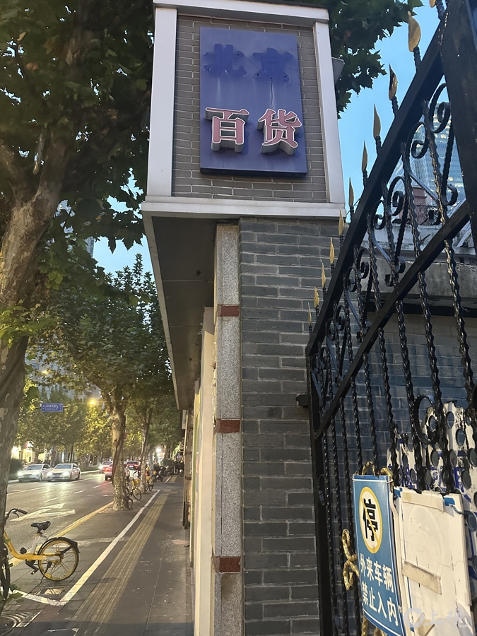 时隔近两年,记者沿着熟悉的路线,再次来到石门二路156号。曾经人头攒动的北京百货商店,如今已被一堵砖墙封住了往日的店面。斑驳的店招上,“北京百货”四个大字仍依稀可见。