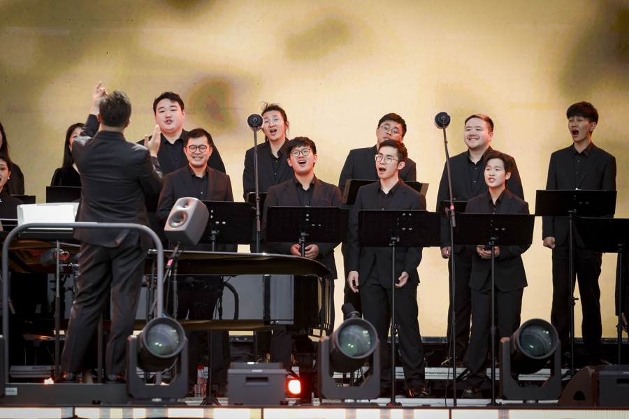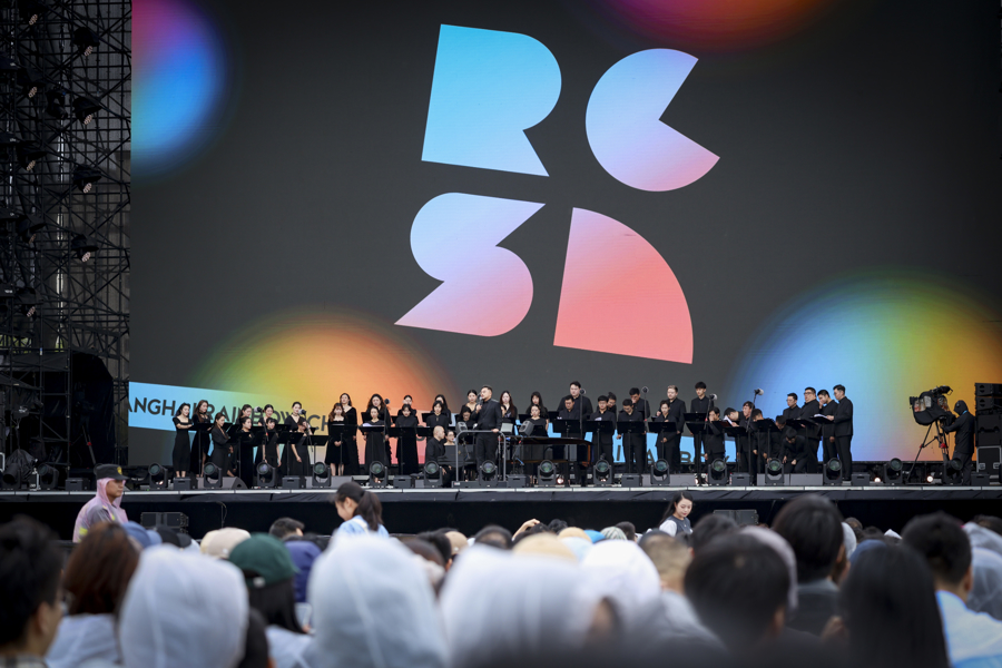 上海彩虹室内合唱团自2010年成立以来,创作多部表达年轻人情感的热门作品。此次音乐节,合唱团以近五十人的全编制阵容登台,艺术总监、指挥金承志携手钢琴伴奏吴经纬,精心编排了近两年巡演中的代表性曲目。《来自外公的一封信》《妈妈,你在看什么?》《老爸的破车》等曲目,以细腻的情感表达和温暖的旋律,勾勒生活里的真挚瞬间。选自合唱剧《罗刹国纪》系列的《乘风破浪》《喜相逢》以及《白马村游记》中的《榕树》在和声编排与艺术表达上大胆探索。《上海的那头》以上海本土生活场景为蓝本传递出对这座城市的深厚情感。压轴曲目《活在爱里面!》唱响时,热闹的行进乐队惊喜登场,打破了舞台与观众的界限,将现场气氛推向高潮。
