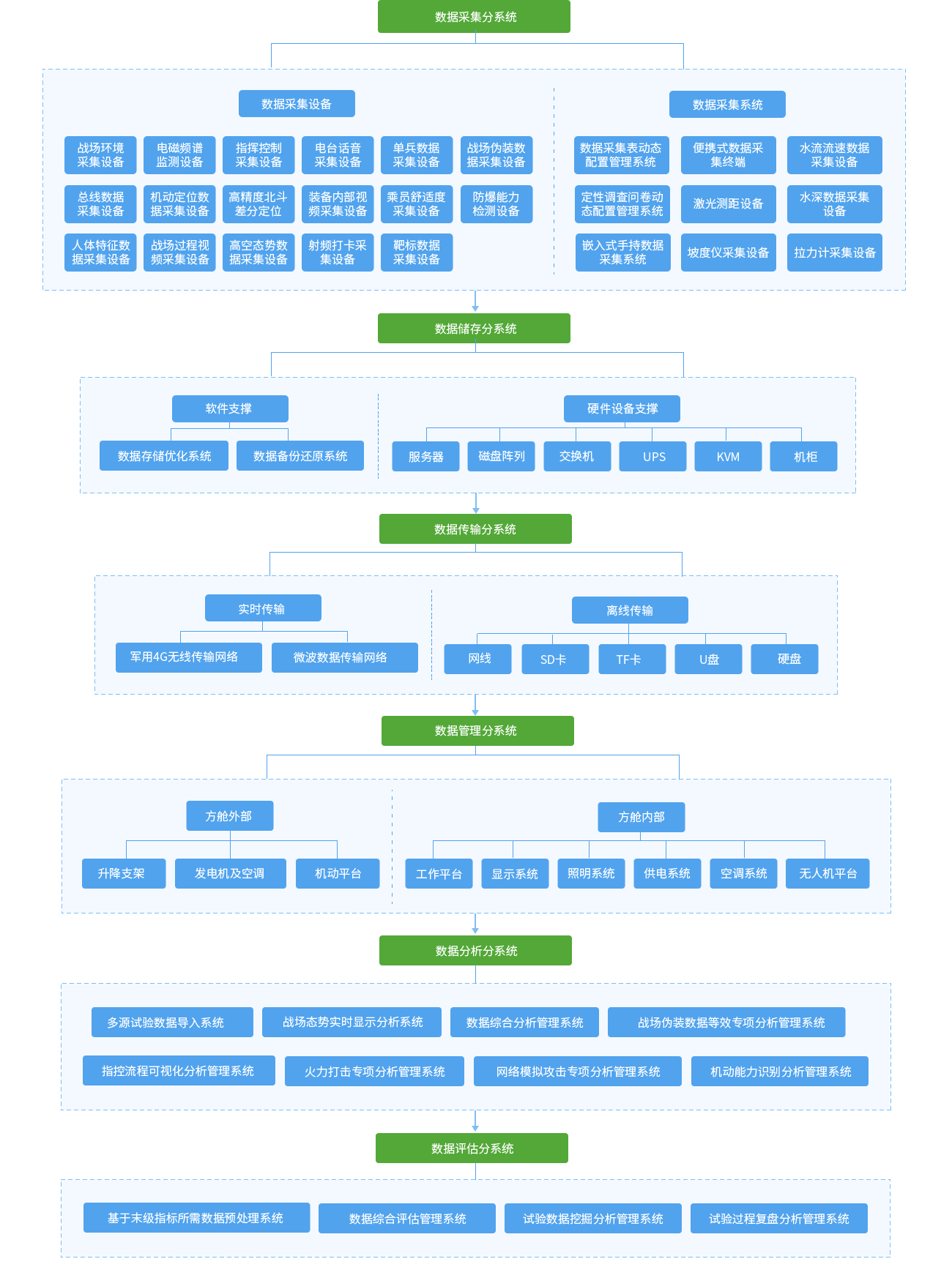 試驗過程中在裝備上加載自動化采集設備完成過程數據自動化采集存儲,并且跟隨試驗開展及時采集問卷數據及采集表數據,架設無線傳輸網絡,實時將前端采集數據回傳至指揮中心,為指揮人員提供數據支撐。